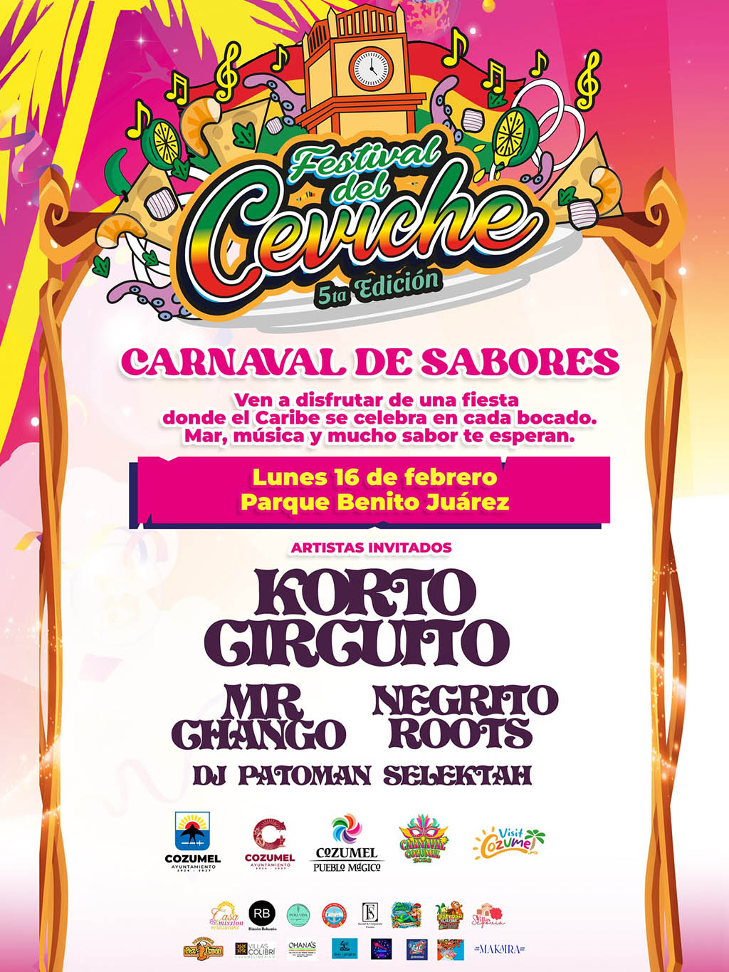 5th Edition of the Ceviche Festival LIFE IS TASTIER AT SEA And it’s celebrated with ceviche. This Monday, February 16. Starting at 1:00 PM Benito Juárez park – Cozumel’s downtown...