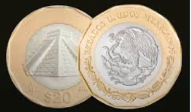The 20-peso coin will have a new design on its edge, bearing the inscription “Estados Unidos Mexicanos” (United Mexican States). Its shape will be dodecagonal, composed of a silver alpaca center and a bronze-aluminum ring. Its reverse will feature the Temple of Kukulkán in Chichén Itzá and the number 20. It will feature the National Coat of Arms on the front and the symbol of the Mexican Mint (“Mo”)