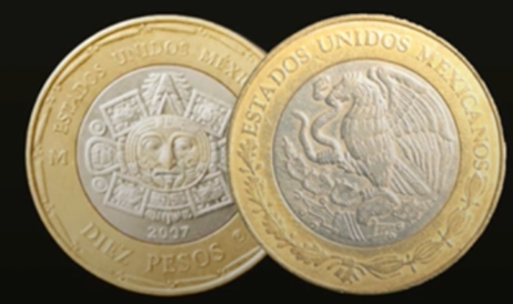 The 100-peso coin is very similar to the one we already know, but like the 20-peso coin, the changes are in the materials used in its manufacture. It will bear the image of the god Tonatiuh with the fire mask from the Sun Stone; the legends “Diez Pesos” and “Estados Unidos Mexicanos” as well as the symbol of the Mexican Mint (“Mo”)