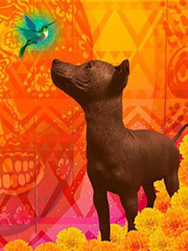 An important representative of these myths, still among us, is the Xoloitzcuintli or Xolo (in Nahua), or k’ik’bil pek (in Maya). This noble, hairless and sacred dog’s task is to guide, protect and help the deceased through perilous roads and cross the rivers to the other world.