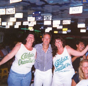 and commented. The whole group had a great week of diving, comradery and some great meals. The first night’s meal was at Big Julian’s and that is when and where the picture was taken. Big Julian’s restaurant no longer exists, but you can still find Big Julian at the nursery on the corner of Avenida 25 and Calle 5. The second photo is from a couple of nights later at Carlos & Charlie’s (the old one uptown). Pat is to the right of me and on the left is Jackie, the trip organizer.