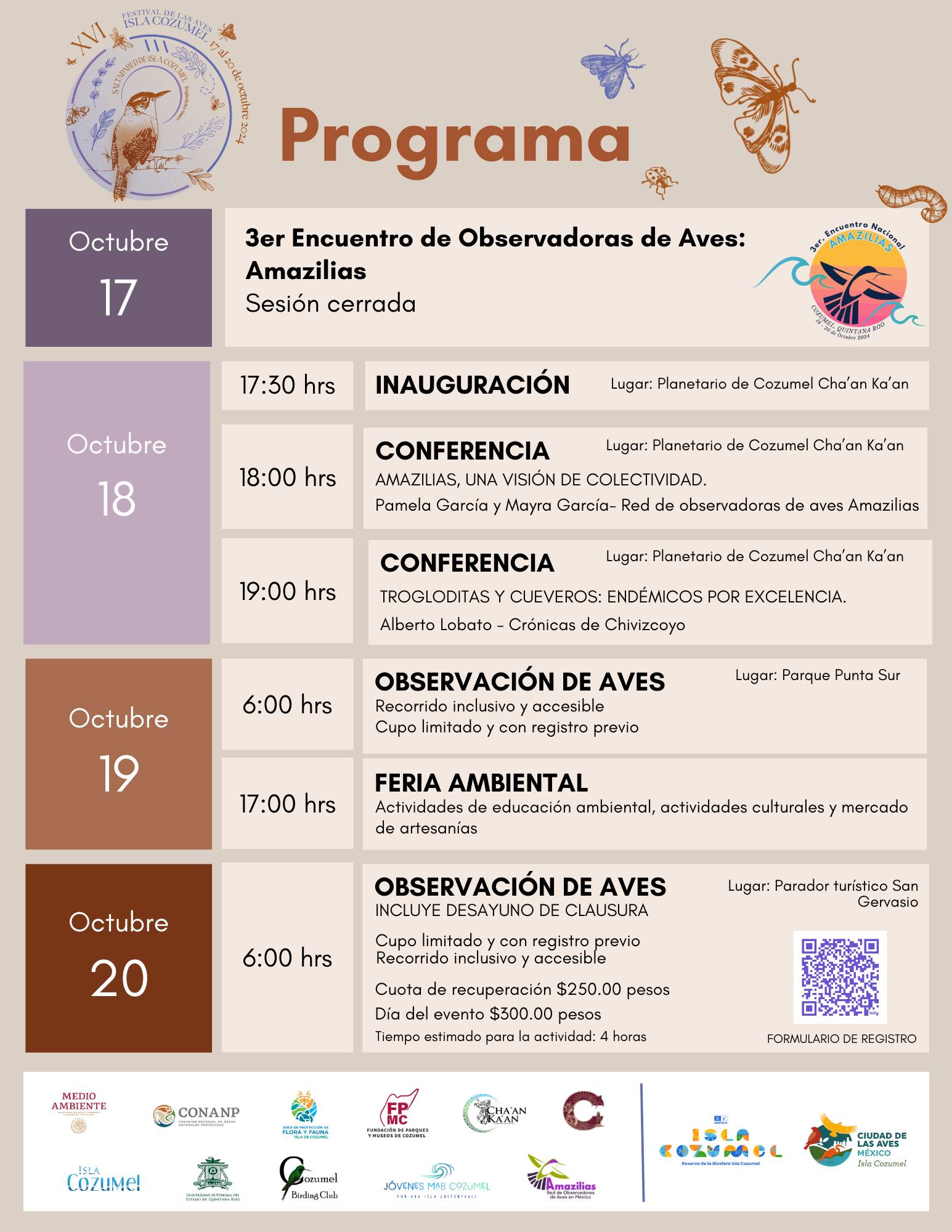 Para el XVII Festival de las Aves Isla Cozumel que tendrá lugar del 24 al 26 de octubre de 2025l, Cozumel se prepara para recibir a observadores de aves, conservacionistas y amantes de la naturaleza. Este Festival se celebra el Día Mundial del Medio Ambiente con la presentación del póster de este año. El tema del festival es “espacios compartidos”; una invitación para promover espacios armoniosos para la gente y la naturaleza al mismo tiempo que se muestra la excepcional diversidad de aves de la Isla.
