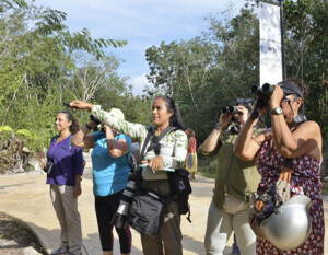 Cozumel. – Women of different ages ds well as young girls from Cozumel took part in a bird watching event organized by Fundación de Parques y Museos de Cozumel (FPMC) and “Amazilias” group at Corazon urban park, to commemorate the International Women’s Day