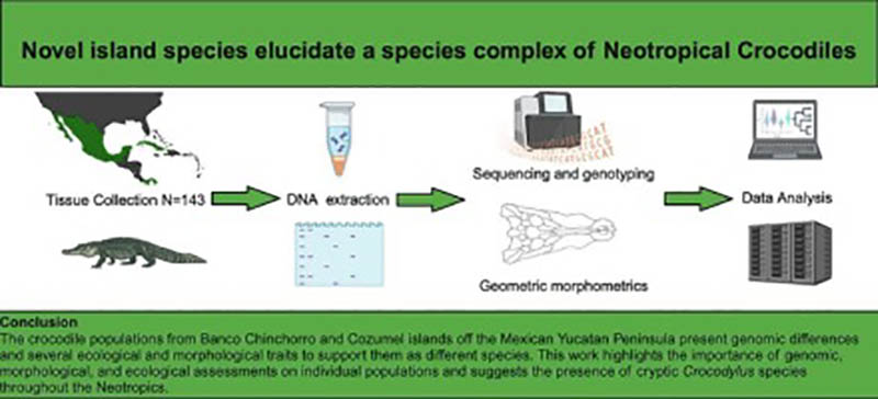 De acuerdo con un artículo nuevo publicado en la revista  Molecular Phylogenetics and Evolution., en un estudio reciente un equipo de científicos de Canadá, México y Panamá descubrieron dos especies de cocodrilos desconocidas hasta ahora en Cozumel y el atolón Banco Chinchorro. Con las cuatro especies conocidas de los cocodrilos del Nuevo Mundo: la americana, Morelet, cubana y Orinoco, la inclusión de estas dos especies descubiertas de cocodrilos eleva el número a seis.