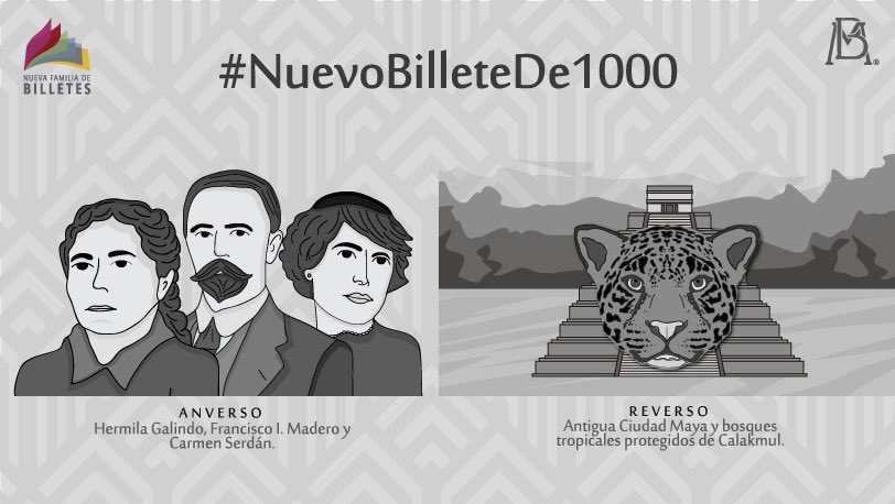cara del billete será la Revolución Mexicana, mostrando imágenes de los activistas revolucionarios Hermila Galindo, Francisco I. Madero y Carmen Serdán.